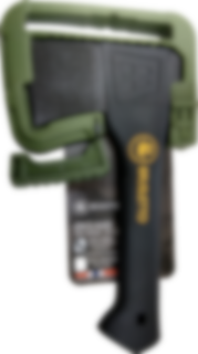This is a small hiking axe, perfect for making firewood and dividing small cubes. Fiberglass shaft, with non-slip coating at the back of the shaft. The axe fits snugly in your hands, even if it's wet. The shaft is cast around the axe head and made of fiberglass that makes it withstand a lot.