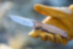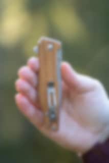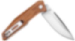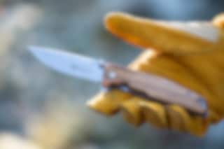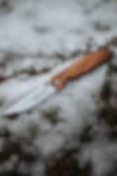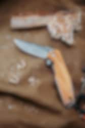 Brusletto Reisa is a practical and solid folding knife. The knife can be opened with one hand with the thumb button and locked. The blade has a Scandinavian grinding and is made of brushed high quality steel with ceramic wheel bearings. On the back of the folding knife there is a pocket clip and a hole to attach the cord to. The side plates are in olive wood. The folding knife is suitable for everything from the outdoor enthusiast to the home fixer or the one in need of a sharp friend.