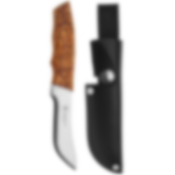 Brusletto Skinner is a supple skinning knife aimed at the big game hunter. The knife lies firmly in the hand and ensures good control during skinning. The blade is made of hardened stainless steel to keep its sharpness for a long time. With straight-cut edges it is easy to set up, also in the field. The curly birch shaft is ergonomically designed to provide a good grip. Take good care of your knife and wipe it off before putting it back in the sheath. You will then have a great hunting knife for a long time, which is always ready to serve its purpose.