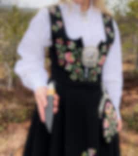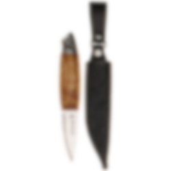 Brusletto Renessanse is one of the five official knives in the series 2000-year knives that were made for the turn of the millennium. Brusletto Renaissance is a highly decorative uutility knife that is also used as a bunad knife. The knife has a holk in hand-moulded tin and the blade is made of stainless knife steel. The blade shaft is made of oiled curly birch and the knife has sheaths in colored oxhide with a characteristic embossed pattern. The sheath has safety inserts and a hinged belt loop. The knife is also widely used as an exclusive gift as it has a very classic, elegant and traditional expression.