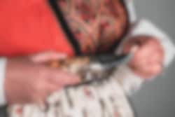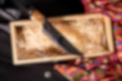 Brusletto Sølvgutten is the No. 1 gift/anniversary knife. It has a massive holk in real 925 silver and comes in a gorgeous wooden box with carvings in the lid. The knife has a total length of 18 cm and a straight-cut blade that is 7.6 cm long. The shaft is made of curly birch that is specially treated so that the pattern in the wood is really expressed. The blade is made of stainless knife steel and the sheath is made of colored oxhide leather and has safety inserts. The sheath has a locking strap that locks the blade in the sheath when not in use. Any engraving is placed on the left side of the blade or optionally on the shaft.
