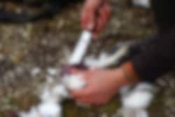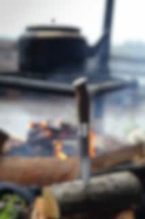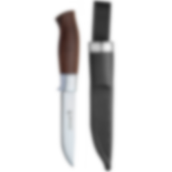 This is a medium-sized all-round knife for hunters and outdoorsmen. The knife was named Best in Test in the outdoor magazine Ute 3/2008. The blade is narrowly cut with a length of 11.5 cm. Cast aluminum holk with finger guard. The knife is superb for fragile bread, sausages, spitty sausage sticks or other tasks you want to use the knife for. The blade is steel grade Sandvik Steel that is durable and easy to grind back up. Shaft in American root nut. The knife is delivered with a sheath and a beautiful gift box.