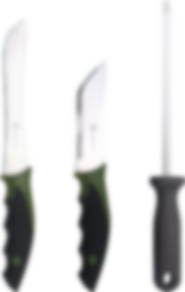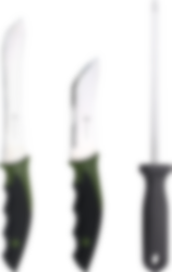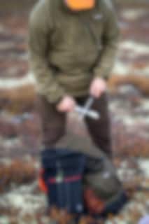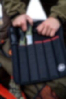Slaughter kits from Brusletto contain a solid knife folder made of cordura material along with a grinding steel, a Skinner skinning knife and Butcher meat knife. The blade folder can be fastened around the waist for easy access to the knife you need when slaughtering. There is room for five knives and a grinding steel in the blade folder. Each room for the knives has a sleeve that makes the knives stand securely in the folder. The blades are fastened with a button around the handle during transport.