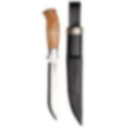 Brusletto Storbukken is a large and great all-round knife with a heaviness and size that makes the knife a good all-rounder. It has a wide straight-cut blade with good weight and length. It has a holk in solid cast aluminum and a black oxhide sheath with safety inserts. The blade is made of stainless steel and the shaft is made of great curly birch. Take good care of your knife and wipe it clean after use before putting it back in the sheath. You will then have a great use knife for a very long time.
