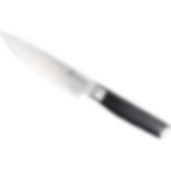 The chef's knife is versatile and the most commonly used knife in the kitchen, hence the name. A slightly smaller chef's knife used for fruit, vegetables, boneless meat and fish.
