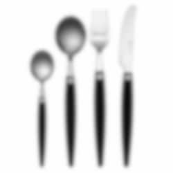 The set includes four knives, four forks, four spoons, and four teaspoons – everything you need for a complete table setting.
