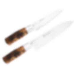 The set contains 2 kitchen knives, a vegetable knife with a 13.5 cm blade and a chef's knife with a 19 cm blade.
