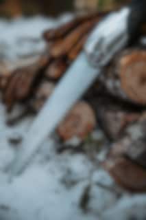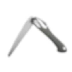 Convenient folding hiking saw in very good quality. The saw blade is manufactured to a Hardness Rockwell C (HRC) of 52, while the teeth have an HRC of 65. The blade has been grinded from 3 angles for the best possible efficiency. The teeth are coated with chrome for extra durability. Rubberized hand grip for a good grip. The angle of he blade can be easily changed with the push button. The saw blade can be locked in two different positions.