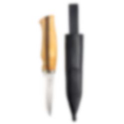 This is an all-round knife for hunters and outdoor enthusiasts. Since the blade is wide and straight-ground, it gives the knife a good weight and balance. The shape of the knife makes it well suited as a traditional Norwegian utility knife. The blade is not too long, which makes the knife comfortable and easy to use. The blade is made of durable 144116N steel that is easy to sharpen. The handle is made of oiled birch and walnut wood. The knife is supplied with a leather sheath with a colored throat.