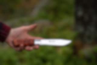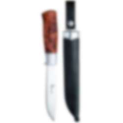 This is Norway's best-selling hunting knife since 1963. So far, more than 1.4 million units of this knife have been sold. The blade is narrow and concise and has a unique blade (expression). Scandinavian straight sharpened blade. On top of the sheath there is a metal band that runs around the entire sheath. Cast aluminum holk with finger guard. 14116 steel in the blade, which is durable and easy to grind back up. Curly birch in the shaft. The knife comes with a leather sheath and a beautiful gift box.