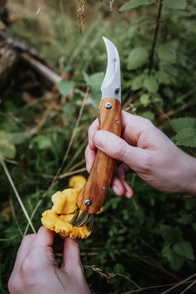 The knife features a rounded tip that makes it easier to cut mushrooms close to the base, while avoiding damage to the mycelium—the underground fungal network that ensures new mushrooms can grow again in the same spot.